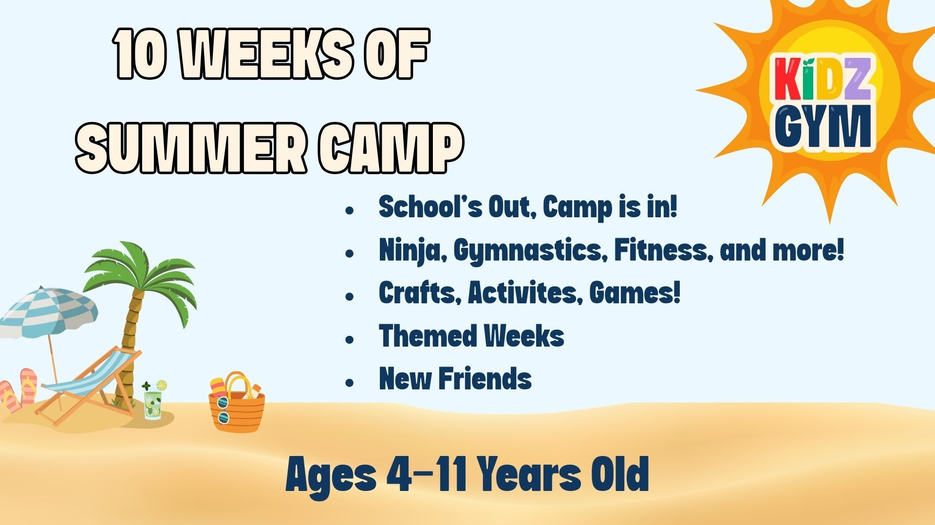 School's out, camp is in! Join us for 10 weeks of fun! KIDZ GYM Summer Camp is an instructional, movement-based summer camp designed for families looking for more than just childcare. Our camps run with low kid-to-coach ratios, knowledgeable coaches, and structured programming that helps kids build confidence, coordination, and strength - all while having an amazing summer.